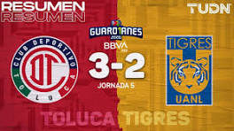Goles y resumen del Tigres 2-1 Toluca en Repechaje Liga MX en 2020 Gracias por seguir la retransmisión del Tigres vs Toluca en Repechaje Liga MX. ... ¡En vivo y con acceso libre! https://t.co/QTE88542pS ... No pierdas detalle del partido con el minuto a minuto y en directo online de VAVEL. ... Resumen y goles | Toluca 3-2 Tigres | Guard1anes 2020 Liga BBVA MX - J5 | ...